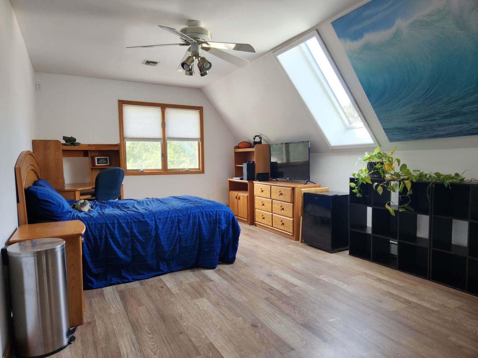 Interior: Attic Attic - Walk Up Bonus Room Center Hall Den Hot Tub Laundry Tub Recessed Light Skylight Sliding Door