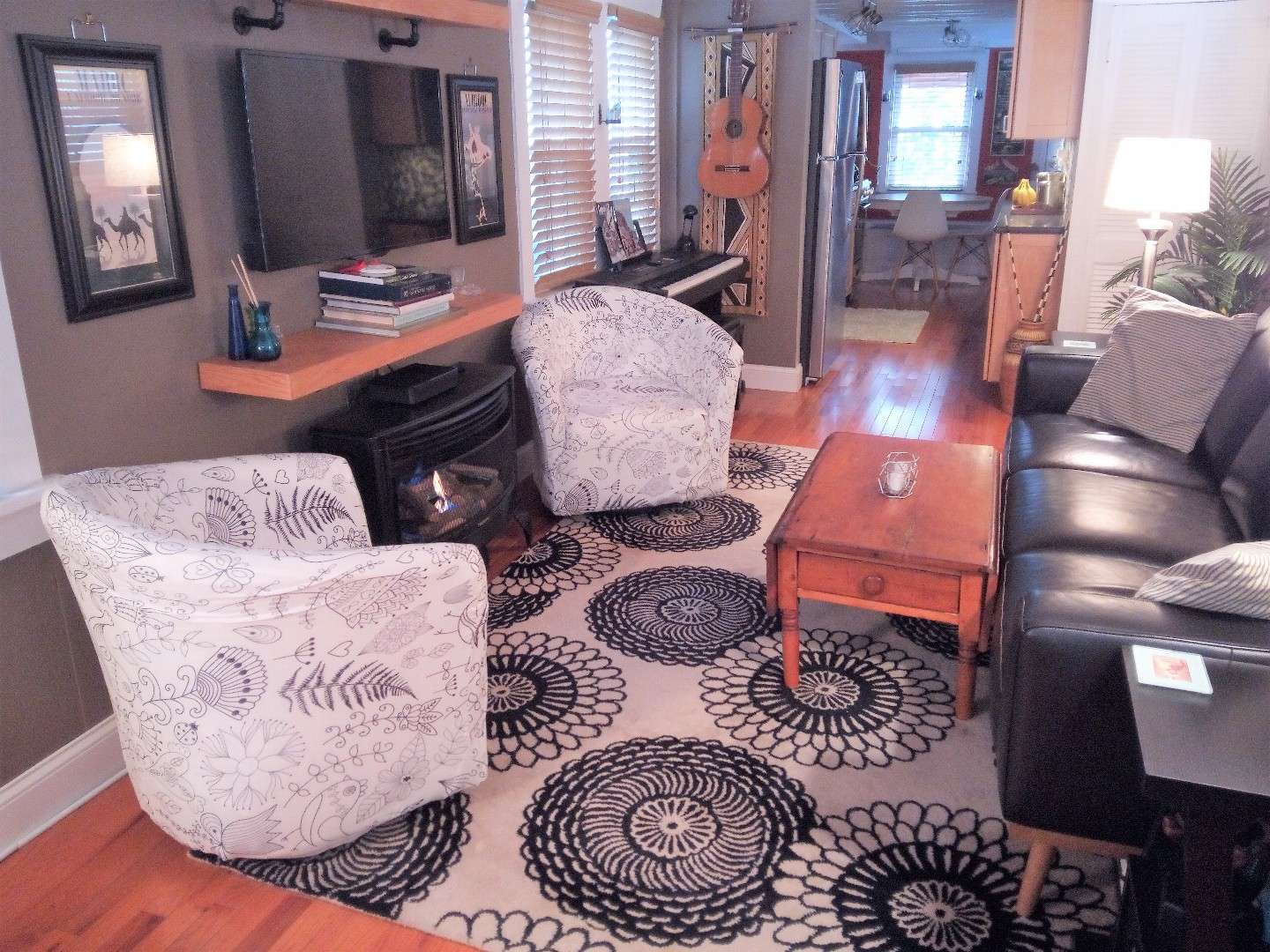 The largest house on "Doll House Row" has 2 full bedrooms and one bath and sleeps 4-6. Kitchen recently renovated with maple cabinets, stainless appliances, and built-in storage banquette seating. Recently renovated tile bath includes glass enclosed shower and laundry/linen area. Bedrooms have raised ceilings finished in solid wood bead board. The house is fully insulated and comfortable for year round living. Heat and A/C updated in 2019 to ductless mini splits. Living room contains gas fireplace. New hardwood floors on first floor, refinished original "heart pine" floors on second. The home offers a glimpse of the bay from the rear windows. It is only three hundred feet from the bay and a five block walk to the beach.